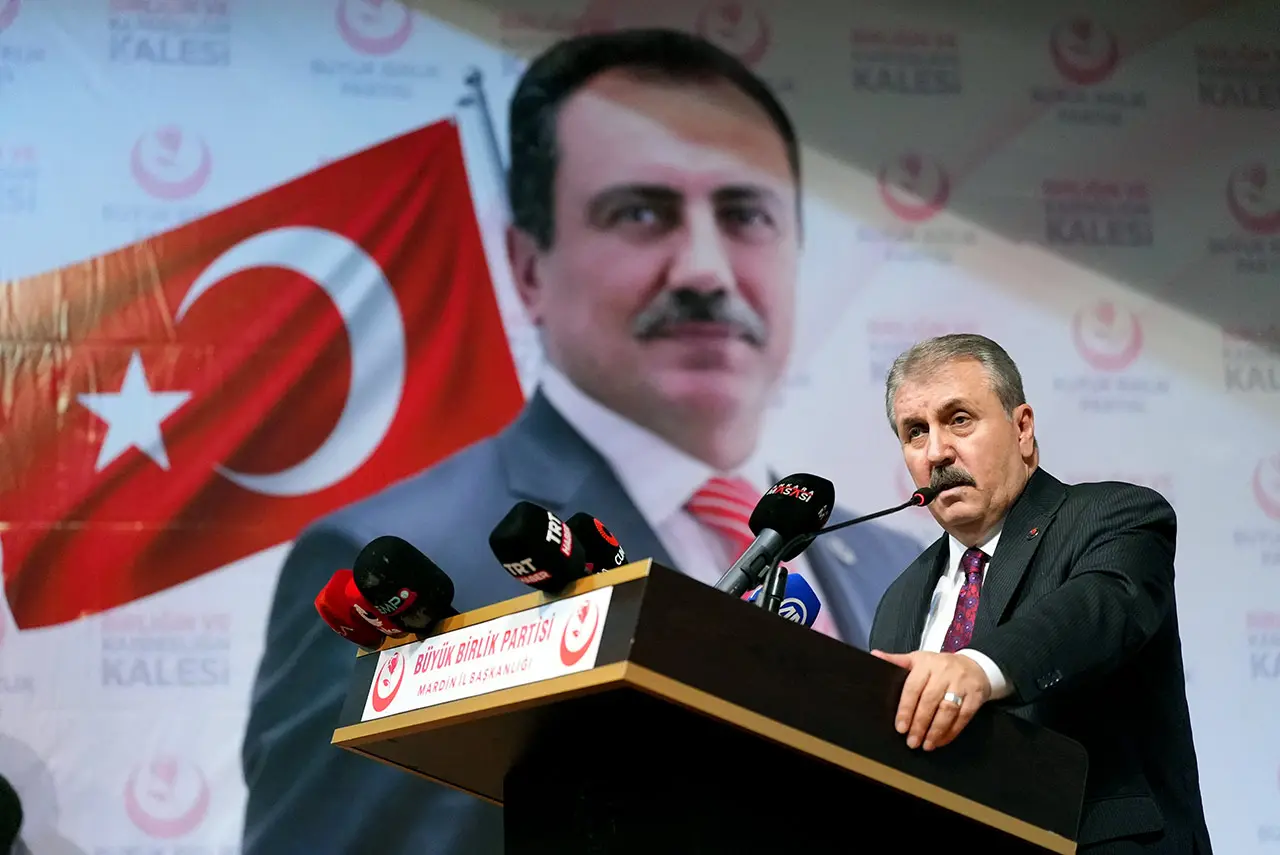 Bakın bu hainler bir taraftan ‘barış’ diyor, öbür taraftan işte bölgede yaşıyorsunuz. Bir tane ilçe örgütlerinde Türk bayrağı asılı mı gördünüz mü? Onun için ifade etmek istediğimi meramı anlattım herhalde. Mardin'deyiz. Artuklu'dan, Dargeçit'ten, Derik'ten, Kızıltepe'den, Mazlıdağı'ndan, Midyat'tan, Nusaybin'den, Ömerli'den, Savur'dan, Yeşilli'den ve çevre il ve ilçelerimizden buraya gelen siz kıymetli kardeşlerime, vatandaşlarıma bir kez daha teşekkür ediyorum, şükranlarımı sunuyorum. Hem bugüne kadarki duruşunuz için hem Büyük Birlik Partimize olan bağlılığınız, sadakatiniz ve desteğiniz için. Başta Mardin il başkanımız Salih Ersöz kardeşimiz olmak üzere tüm yöneticilerine, tüm ilçe başkanlarına, kadın kollarına, Alperen Ocaklı gençlerimize, hepsine teşekkür ediyorum. Kongremizin Mardin'imiz için bölgemiz için, Türkiye'miz için hayırlı olmasını Cenâb-ı Hak'tan niyaz ediyorum ve Salih Ersöz kardeşim başta olmak üzere seçilecek yönetime de başarılar diliyorum. Allah yar ve yardımcımız olsun. Allah birliğimizi, dirliğimizi, kardeşliğimizi daim eylesin. Bunu bozmaya çalışanlara da asla fırsat vermesin. Sağ olun, var olun, Allah'a emanet olun.”