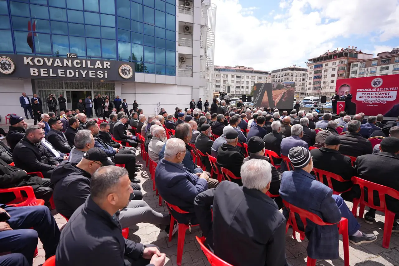Ve elhamdülillah bugüne kadar da hem bu sözümüzün arkasında durduk hem de sözümüzün gereğini yerine getirdik. Onun için bugün sizlerin karşısında alnımız ak, başımız dik bir şekilde bulunuyoruz. Tam 4 Nisan 2024, 13 Nisan 2026; iki yıl dokuz gün olmuş. Bu süre zarfında Kovancılarımızın belediye hizmetleri ve yatırımları açısından öncelikli olarak yapılması gereken, işte biraz önce burada izledik; altyapıdan üstyapıya, çevre düzenlemesinden araç filolarına, sosyal belediyecilik, öğrencilerimizin burslarından gelir düzeyi düşük, fakir, yoksul kardeşlerimize destek verilmesine kadar. Ve iş adamlarımıza, yatırımcılarımıza, üreticilerimize, tarım üreticilerimiz olsun, zirai üretim yapanlar olsun, hayvancılıkla uğraşanlar olsun, diğer hobilerimiz olsun; bütün bunların altyapısı, fabrika ihtiyaçları, iş yeri ihtiyaçları, bu fabrikaların, bu işletmelerin yollarının yapılması ve velhasıl her noktada belediyemiz Kovancılarlı kardeşlerimizin yanında olduğu, bundan sonra da olmaya devam edecek.
